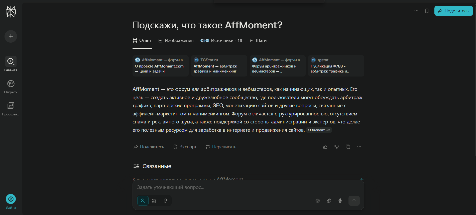 Perplexity.ai – это нейросеть, которая задумывалась в первую очередь как альтернативный поисковик. Нейронка ищет источники для ответа на вопрос пользователя, анализирует данные, дает ссылки. Цель – выдать юзеру корректный и развернутый ответ на его запрос.