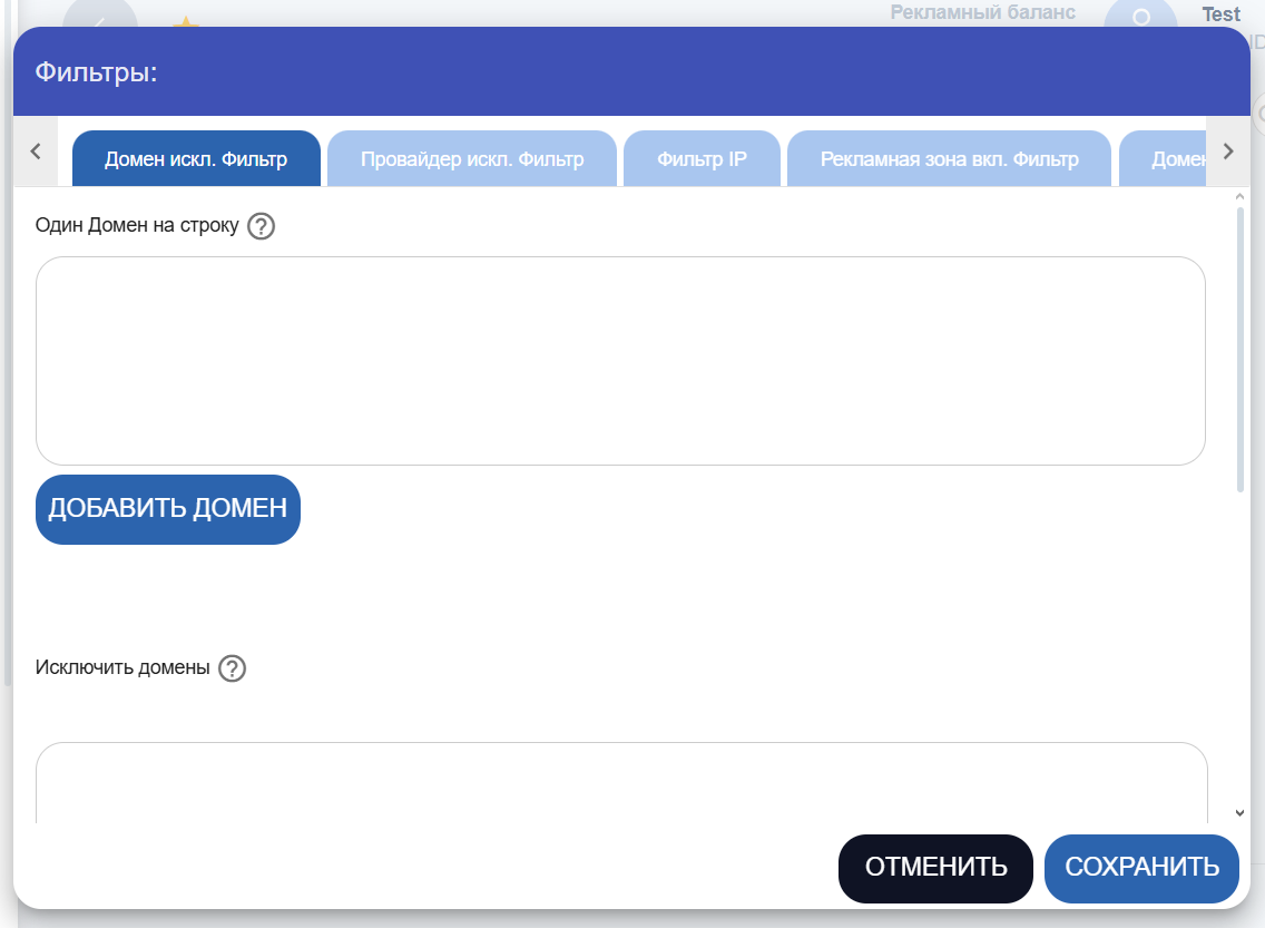 - Формирование черных списков по IP, доменам, провайдерам, рекламной зоне и т. д;