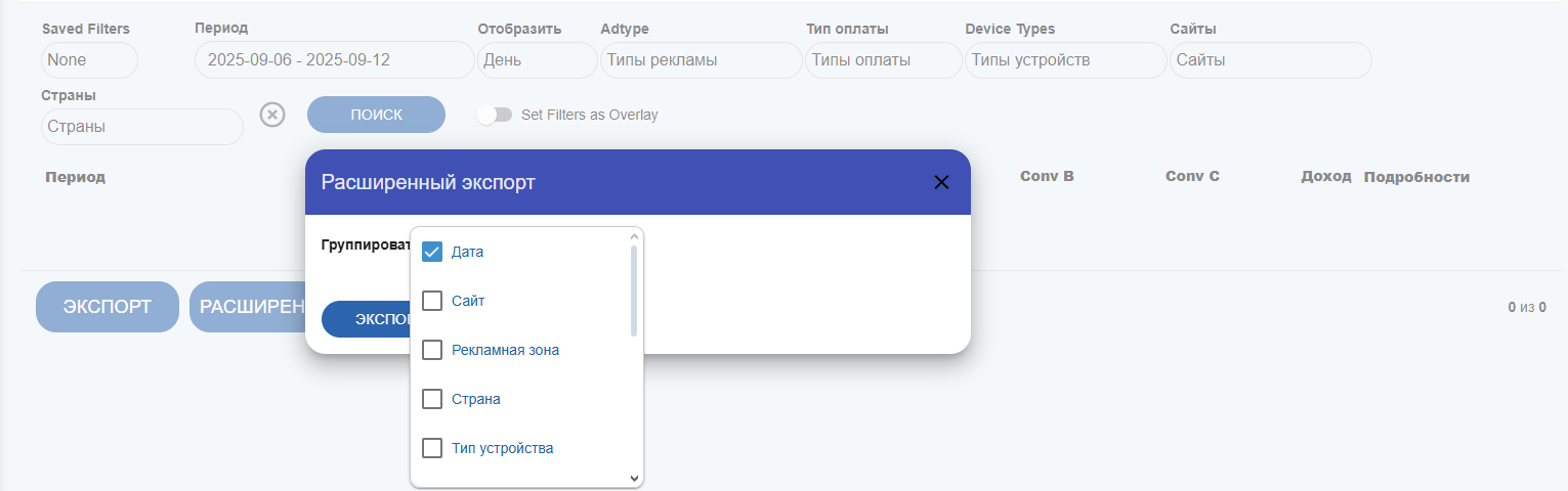 В подразделе «Кампании» вы сможете видеть общую аналитику. О том, как ее максимально эффективно использовать, я еще расскажу – когда буду говорить о технологичности платформы. А пока добавлю, что статистика показывается для каждого формата отдельно. А колонки вы можете добавлять и удалять самостоятельно.