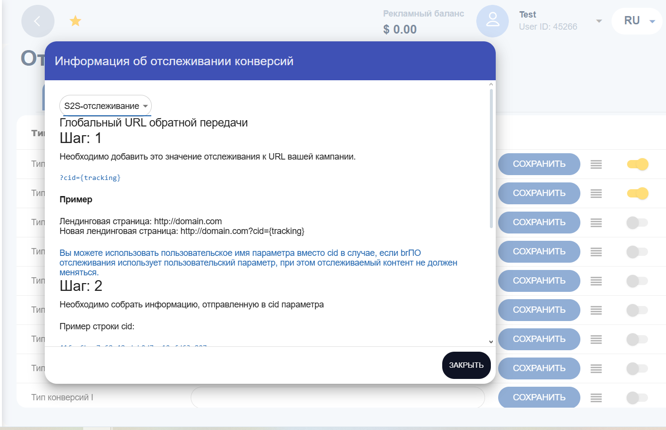 И еще пара слов о трекинге. Чтобы отслеживать эффективность кампаний, есть поддержка S2S-постбэка и SubID. Данные по кликам, CTR и конверсиям обновляются в реальном времени. Так что можно быстро принять решение о масштабировании или стопе связок.