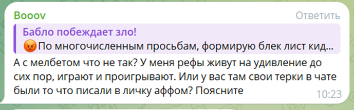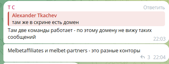 А сейчас я постараюсь объективно оценить партнерку по всем ключевым моментам. Без отзывов это сделать никак нельзя, поэтому будут реальные отклики вебов из чатов. А еще я сравню MelBet Partners с конкурентами и с… клонами под тем же брендом, которых сейчас просто вагон.