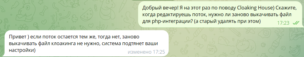 Саппорт у Клоакинг Хаус, как и у его сородича – партнерки CPA.House, оказался на высоте. Во-первых, оцените скорость ответов в чате поддержки: