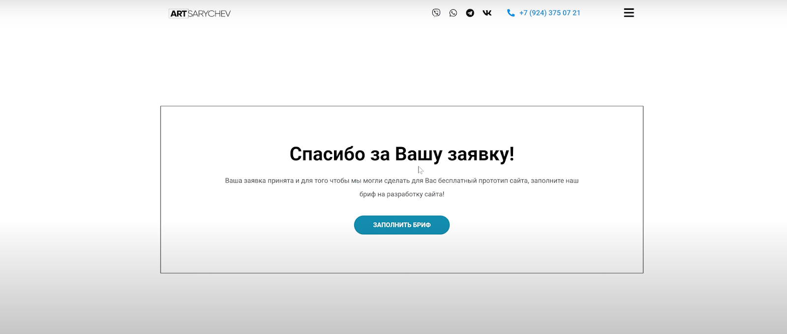 - Благодарность: «Спасибо за ваш заказ!»;