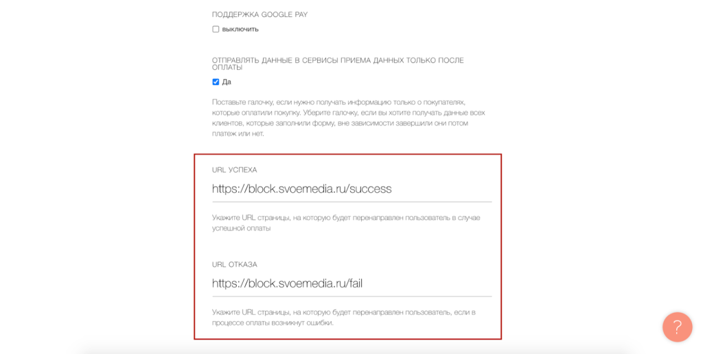 Дальше настройте отображение благодарственных страниц после оплаты или после отправки формы.