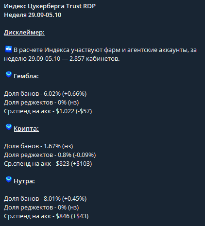 - Делят кабинеты под разные вертикали (нутру, гемблу, крипту), за счет чего аккаунты банятся гораздо медленнее;