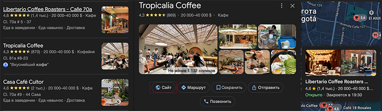 Узнаем столицу вашего гео залива и в поисковом запросе пишем: «Кофейни Богота Колумбия» ищем симпатичный сайт и скачиваем с помощью сторонних приложений.