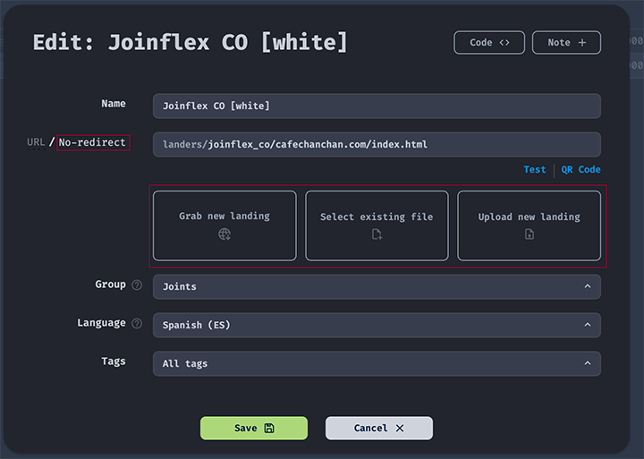 Трекер не может направлять пользователей на страницы, которых в нем нет. Поэтому все лендинги, участвующие в схеме залива, сначала добавляются в отдельный раздел — Landings.