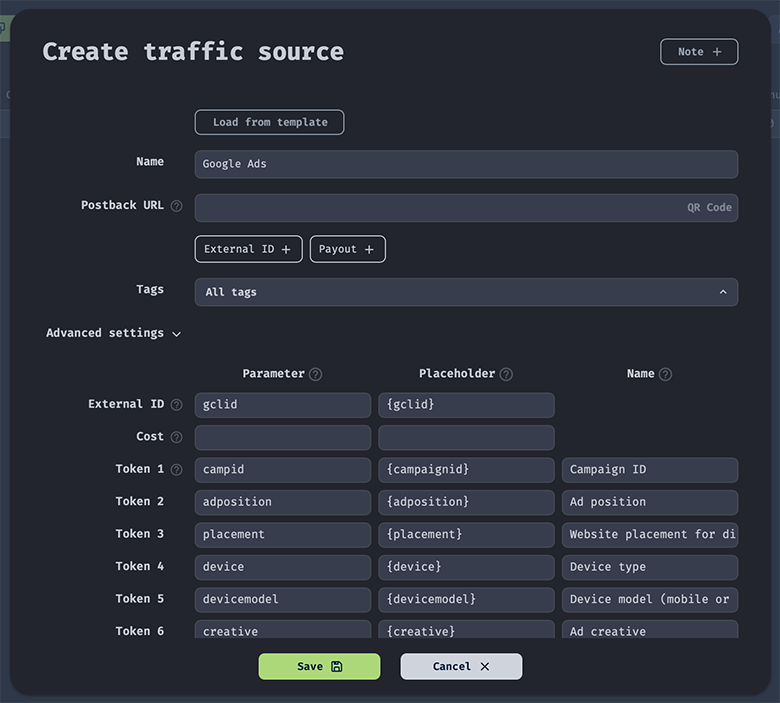 Первый раздел куда мы зайдем – это Trafic Source, в этом разделе нам нужно выбрать из шаблонов источник трафика, с которым мы будем работать. Их большое количество, когда будете пользоваться можете посмотреть самостоятельно, я в свою очередь сразу выбрал Google Ads.