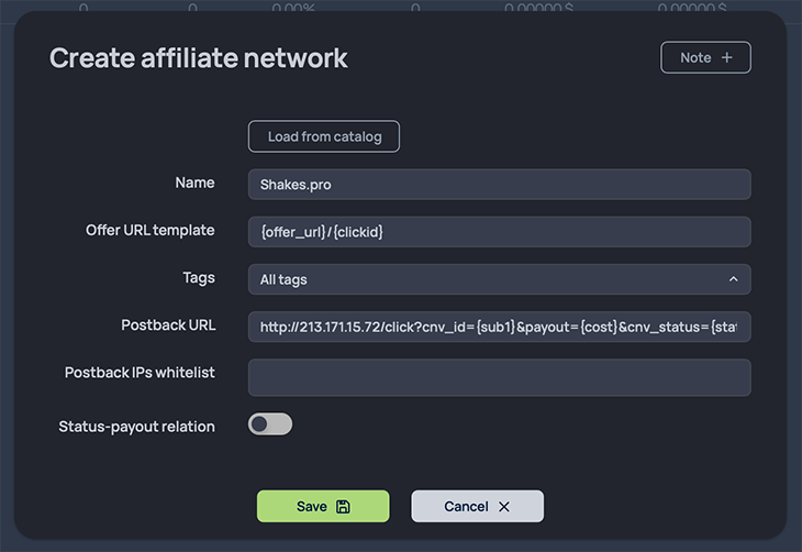 Не забываем скопировать Postback URL и прописать его в партнерки в глобальном постбеке. В моем партнерке он находиться по этой ссылке.